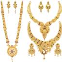This Thakar Enterprises antique gold plated string necklace set combo for women is made of alloy. women love jewellery; specially traditional jewellery adore a women. they wear it on different occasion. they have special importance on ring ceremony, wedding and festive time. they can also wear it on regular basics. make your moment memorable with this range. this jewel set features a unique one of a kind traditional embellish with antic finish.