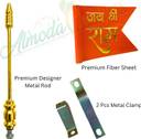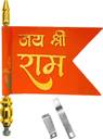 अल्मोड़ा क्रिएशंस जय श्री राम 3D कट डिज़ाइन कार बॉनेट फ्लैग गोल्ड प्लेटेड मेटल रॉड, 2 क्लैम्प्स रेक्टेंगल कर विंडो फ्लैग (प्लास्टिक)