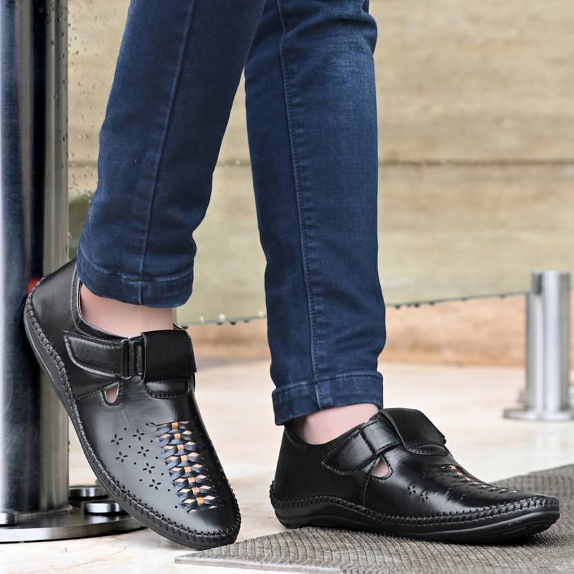 AMICO Men Sandals (Black , 8)