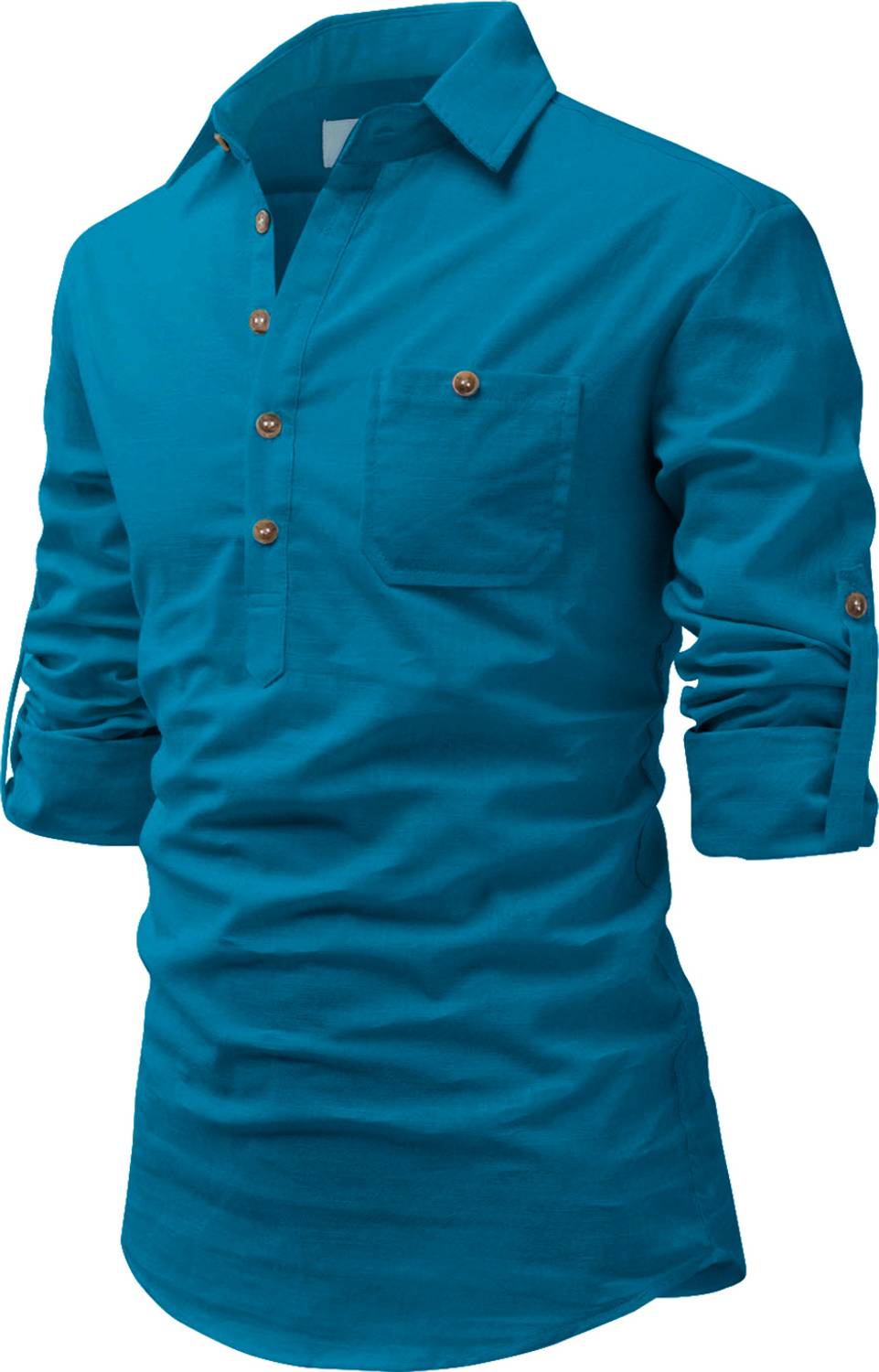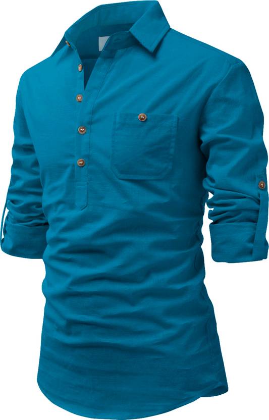 एडिनवुल्फ पुरुषों के लिए सॉलिड स्ट्रेट कुर्ता (नीला)