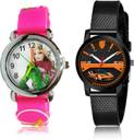 Dial Colour : White And Black ; Band Colour : Pink And Black ; Case Shape : Round ; Band Material : Plastic ; Case Diameter : 29 And 32 mm ; GROOT Latest Valentine Doll Kids Pink And Black Colour Analog Plastic Belt 2 Watch Combo For Women And Girls - GC43-(33-L-10)#