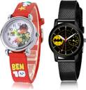 Dial Colour : White And Black ; Band Colour : Red And Black ; Case Shape : Round ; Band Material : Plastic ; Case Diameter : 29 And 32 mm ; GROOT New Royal Ben 10 Kids Red And Black Colour Analog Plastic Belt 2 Watch Combo For Women And Girls - GC122-(42-L-10)#