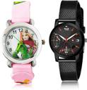 Dial Colour : White And Black ; Band Colour : Pink And Black ; Case Shape : Round ; Band Material : Resin And Plastic ; Case Diameter : 28 And 32 mm ; GROOT Modern Style Doll Kids Pink And Black Colour Analog Resin And Plastic Belt 2 Watch Combo For Women And Girls - G324-(40-L-10)#