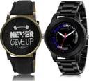 Dial Colour : Black ; Band Colour : Black ; Case Shape : Round ; Band Material : Genuine Leather And Stainless Steel ; Case Diameter : 42 And 47 mm ; GROOT Treading Traditional Never Give Up And Black Chain Black Colour Analog Genuine Leather And Stainless Steel Belt 2 Watch Combo For Boys And Men - BL46.27-(44-S-20)
