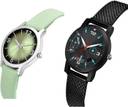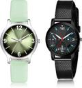 Dial Colour : Green And Black ; Band Colour : Green And Black ; Case Shape : Round ; Band Material : Genuine Leather And Plastic ; Case Diameter : 33 And 32 mm ; GROOT Modern Style Girls Watch Green And Black Colour Analog Genuine Leather And Plastic Belt 2 Watch Combo For Women And Girls - GM351-(41-L-10)#