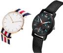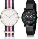 Dial Colour : White And Black ; Band Colour : Blue And Black ; Case Shape : Round ; Band Material : Fabric And Plastic ; Case Diameter : 40 And 32 mm ; GROOT Best Fancy Fabric Blue And Black Colour Analog Fabric And Plastic Belt 2 Watch Combo For Women And Girls - GC21-(41-L-10)#