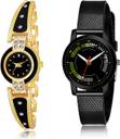 Dial Colour : Black ; Band Colour : Gold And Black ; Case Shape : Round ; Band Material : Stainless Steel And Plastic ; Case Diameter : 21 And 32 mm ; GROOT Treading Love Royal Rajwadi Gold And Black Colour Analog Stainless Steel And Plastic Belt 2 Watch Combo For Women And Girls - G444-(43-L-10)#