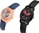 Dial Colour : Rose Gold And Black ; Band Colour : Blue And Black ; Case Shape : Round ; Band Material : Genuine Leather And Plastic ; Case Diameter : 34 And 32 mm ; GROOT Brand New High Quality Love Heart Blue And Black Colour Analog Genuine Leather And Plastic Belt 2 Watch Combo For Women And Girls - GM372-(37-L-10)#