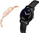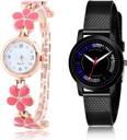 Dial Colour : White And Black ; Band Colour : Rose Gold And Black ; Case Shape : Round ; Band Material : Stainless Steel And Plastic ; Case Diameter : 21 And 32 mm ; GROOT Treading Rich Flower Rose Gold And Black Colour Analog Stainless Steel And Plastic Belt 2 Watch Combo For Women And Girls - G461-(44-L-10)#