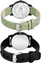 Dial Colour : Green And Black ; Band Colour : Green And Black ; Case Shape : Round ; Band Material : Genuine Leather And Plastic ; Case Diameter : 32 mm ; NEUTRON New Fashionable Geometric Texture And Bicycle Green And Black Colour Analog Genuine Leather And Plastic Belt 2 Watch Combo For Women And Girls - GM506-G524