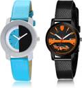 Dial Colour : Black ; Band Colour : Blue And Black ; Case Shape : Round ; Band Material : Genuine Leather And Plastic ; Case Diameter : 32 mm ; NIKOLA Brand New Technology Genuine Leather Blue And Black Colour Analog Genuine Leather And Plastic Belt 2 Watch Combo For Women And Girls - G274-(33-L-10)#