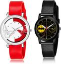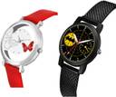 Dial Colour : Red And Black ; Band Colour : White And Black ; Case Shape : Round ; Band Material : Plastic ; Case Diameter : 38 And 32 mm ; GROOT Contemporary Casual Butterfly White And Black Colour Analog Plastic Belt 2 Watch Combo For Women And Girls - G558-(42-L-10)#