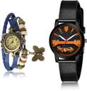 Dial Colour : White And Black ; Band Colour : Blue And Black ; Case Shape : Round ; Band Material : Genuine Leather And Plastic ; Case Diameter : 27 And 32 mm ; GROOT Modern Heart Butterfly Blue And Black Colour Analog Genuine Leather And Plastic Belt 2 Watch Combo For Women And Girls - G59-(33-L-10)#