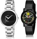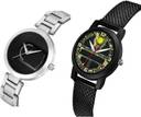 Dial Colour : Black And Green ; Band Colour : Silver And Black ; Case Shape : Round ; Band Material : Metal And Plastic ; Case Diameter : 35 And 32 mm ; GROOT Modern Wrist Chain Silver And Black Colour Analog Metal And Plastic Belt 2 Watch Combo For Women And Girls - GM216-(34-L-10)#