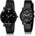 Dial Colour : Black ; Band Colour : Black ; Case Shape : Round ; Band Material : Stainless Steel And Plastic ; Case Diameter : 33 And 32 mm ; NIKOLA Classical Model Magnet Black Colour Analog Stainless Steel And Plastic Belt 2 Watch Combo For Women And Girls - GC1-(41-L-10)#