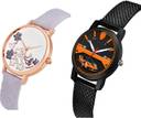 Dial Colour : White And Black ; Band Colour : Purple And Black ; Case Shape : Round ; Band Material : Genuine Leather And Plastic ; Case Diameter : 34 And 32 mm ; GROOT Classical Casual Sparkle Flower Purple And Black Colour Analog Genuine Leather And Plastic Belt 2 Watch Combo For Women And Girls - GM502-(33-L-10)#