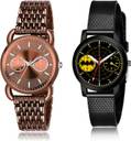 Dial Colour : Brown And Black ; Band Colour : Brown And Black ; Case Shape : Round ; Band Material : Stainless Steel And Plastic ; Case Diameter : 34 And 32 mm ; GROOT Classical Party Wedding Bangle Brown And Black Colour Analog Stainless Steel And Plastic Belt 2 Watch Combo For Women And Girls - GL275-(42-L-10)#