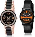 Dial Colour : Black ; Band Colour : Black ; Case Shape : Round ; Band Material : Stainless Steel And Plastic ; Case Diameter : 36 And 32 mm ; GROOT Brand New Gift Stainless Steel Black Colour Analog Stainless Steel And Plastic Belt 2 Watch Combo For Women And Girls - G209-(33-L-10)#