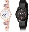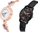 Dial Colour : White And Black ; Band Colour : Rose Gold And Black ; Case Shape : Round ; Band Material : Metal And Plastic ; Case Diameter : 29 And 32 mm ; GROOT Modish Tread Chain Bracelet Diamond Rose Gold And Black Colour Analog Metal And Plastic Belt 2 Watch Combo For Women And Girls - G599-(40-L-10)#