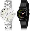 Dial Colour : White And Black ; Band Colour : Silver And Black ; Case Shape : Round ; Band Material : Metal And Plastic ; Case Diameter : 36 And 32 mm ; GROOT New Present Simple Chain Silver And Black Colour Analog Metal And Plastic Belt 2 Watch Combo For Women And Girls - GM235-(43-L-10)#