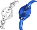 Dial Colour : White And Blue ; Band Colour : Silver And Blue ; Case Shape : Round ; Band Material : Metal And Stainless Steel ; Case Diameter : 25 And 28 mm ; NEUTRON Modish Branded Love Heart Chain And Stainless Steel Silver And Blue Colour Analog Metal And Stainless Steel Belt 2 Watch Combo For Women And Girls - G661-G464
