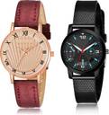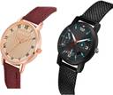 Dial Colour : Rose Gold And Black ; Band Colour : Red And Black ; Case Shape : Round ; Band Material : Genuine Leather And Plastic ; Case Diameter : 36 And 32 mm ; GROOT Contemporary Technology Roman Numbers Red And Black Colour Analog Genuine Leather And Plastic Belt 2 Watch Combo For Women And Girls - GW48-(41-L-10)#