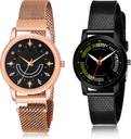 Dial Colour : Black ; Band Colour : Rose Gold And Black ; Case Shape : Round ; Band Material : Metal And Plastic ; Case Diameter : 32 mm ; GROOT Contemporary Chronograph Star Magnet Chain Rose Gold And Black Colour Analog Metal And Plastic Belt 2 Watch Combo For Women And Girls - GW71-(43-L-10)#