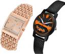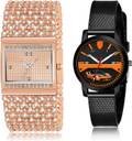 Dial Colour : Rose Gold And Black ; Band Colour : Rose Gold And Black ; Case Shape : Rectangle And Round ; Band Material : Metal And Plastic ; Case Diameter : 30 And 32 mm ; GROOT Best High Quality Chain Bracelet Diamond Rose Gold And Black Colour Analog Metal And Plastic Belt 2 Watch Combo For Women And Girls - G591-(33-L-10)#