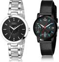 Dial Colour : Black ; Band Colour : Silver And Black ; Case Shape : Round ; Band Material : Stainless Steel And Plastic ; Case Diameter : 34 And 32 mm ; GROOT New Valentine Chain Silver And Black Colour Analog Stainless Steel And Plastic Belt 2 Watch Combo For Women And Girls - GM201-(41-L-10)#