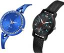 Dial Colour : Blue And Black ; Band Colour : Blue And Black ; Case Shape : Round ; Band Material : Stainless Steel And Plastic ; Case Diameter : 32 mm ; GROOT Classical 3D Design Bangle Chain Blue And Black Colour Analog Stainless Steel And Plastic Belt 2 Watch Combo For Women And Girls - GL270-(41-L-10)#