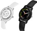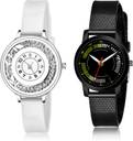 Dial Colour : White And Black ; Band Colour : White And Black ; Case Shape : Round ; Band Material : Plastic ; Case Diameter : 30.5 And 32 mm ; NIKOLA New Style Flower White And Black Colour Analog Plastic Belt 2 Watch Combo For Women And Girls - G90-(43-L-10)#