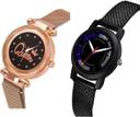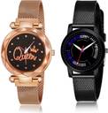 Dial Colour : Black ; Band Colour : Rose Gold And Black ; Case Shape : Round ; Band Material : Metal And Plastic ; Case Diameter : 33 And 32 mm ; GROOT Modern 3D Design Queen Magnet Chain Rose Gold And Black Colour Analog Metal And Plastic Belt 2 Watch Combo For Women And Girls - G538-(44-L-10)#