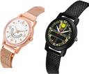 Dial Colour : White And Green ; Band Colour : Rose Gold And Black ; Case Shape : Round ; Band Material : Metal And Plastic ; Case Diameter : 32 mm ; NIKOLA Best Heart Star Magnet Chain Rose Gold And Black Colour Analog Metal And Plastic Belt 2 Watch Combo For Women And Girls - GW70-(34-L-10)#