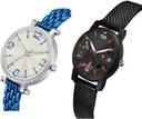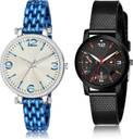Dial Colour : Silver And Black ; Band Colour : Blue And Black ; Case Shape : Round ; Band Material : Metal And Plastic ; Case Diameter : 35 And 32 mm ; GROOT Modish Style Chain Bracelet Blue And Black Colour Analog Metal And Plastic Belt 2 Watch Combo For Women And Girls - GW43-(40-L-10)#