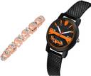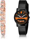Dial Colour : Rose Gold And Black ; Band Colour : Rose Gold And Black ; Case Shape : Round ; Band Material : Metal And Plastic ; Case Diameter : 6 And 32 mm ; GROOT New Heart Bracelet Rose Gold And Black Colour Analog Metal And Plastic Belt 2 Watch Combo For Women And Girls - GX4-(33-L-10)#