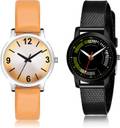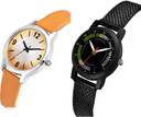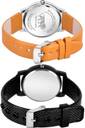 Dial Colour : Orange And Black ; Band Colour : Orange And Black ; Case Shape : Round ; Band Material : Genuine Leather And Plastic ; Case Diameter : 33 And 32 mm ; GROOT Treading Wrist Simple Orange And Black Colour Analog Genuine Leather And Plastic Belt 2 Watch Combo For Women And Girls - GM354-(43-L-10)#