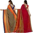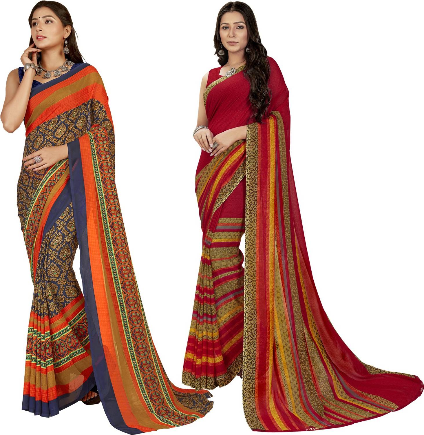 Anand Sarees Printed, Paisley, Ombre, Striped, Geometric Print, Animal Print, Floral Print, Checkered Daily Wear Georgette Saree (Pack of 2, Red)