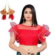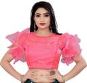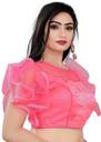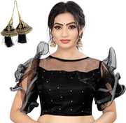 Women Round Neck Stylish Blouse Stylish Fashionable Readymade Net Lycra Bland Blouse with Padded Free Size (30-40) (Black)