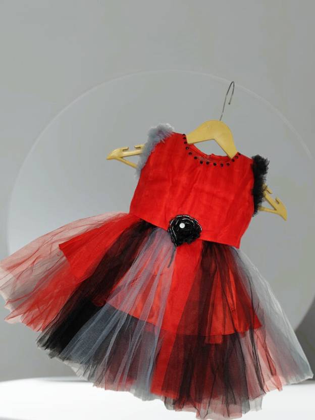Girls Midi/Knee Length Casual Dress (Red, Sleeveless)