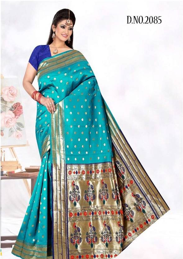 Woven Paithani Pure Silk Saree (Blue)
