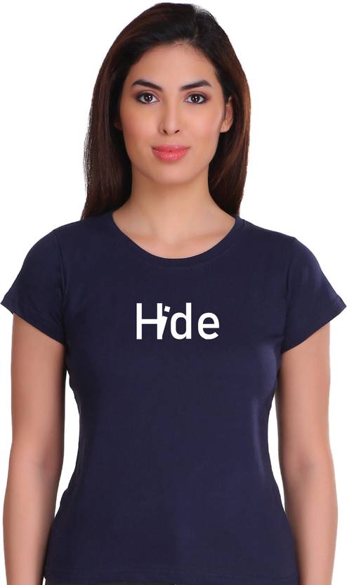 Women Typography Round Neck Cotton Blend Dark Blue T-Shirt