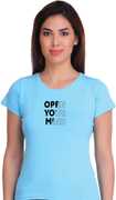 Women Typography Round Neck Cotton Blend Red T-Shirt