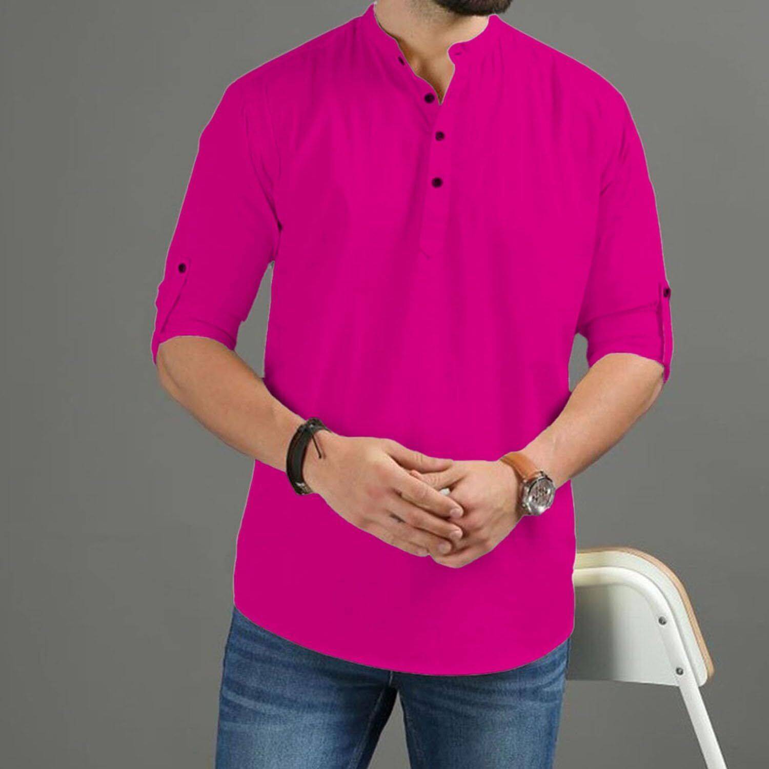 GUYS HUBB Men Solid Straight Kurta (Beige)