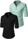 Introducing the Apketra Men's Cotton Blend Kurta Pack of 2 in a sophisticated solid pattern. The Comon Black base, coupled with accent colors like Grey, Maroon, Orange, and more, ensures a wardrobe essential for every occasion.