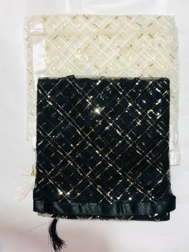 Embroidered Net Black & White Color With Lace Women Dupatta Combo
