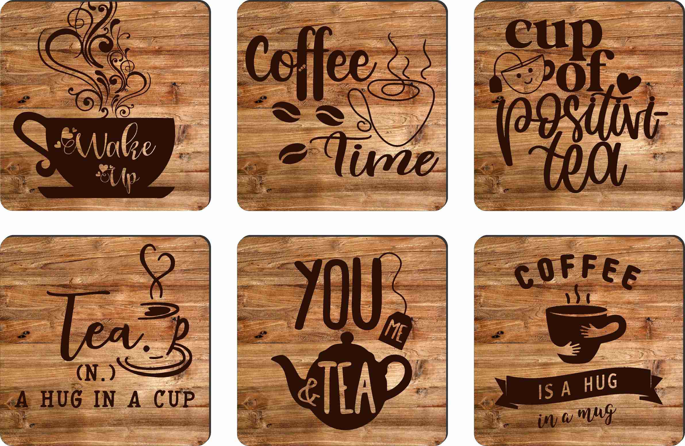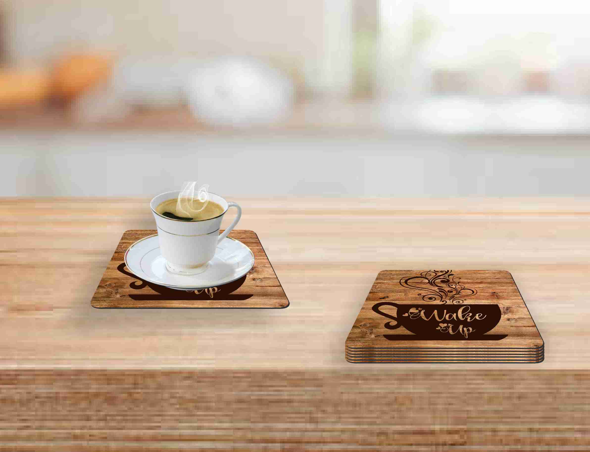 स्क्वेर रिवर्सेबल वुड कोस्टर सेट (पैक ऑफ 6)