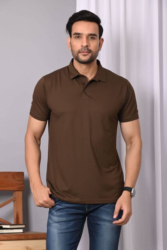 Arbour Men Solid Polo Neck Cotton Blend Brown T-Shirt