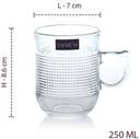 दिस सेट ऑफ 6 ग्लास टी कप्स बोस्ट्स ए मिनिमलिस्टिक डिज़ाइन दैट एग्ज्यूड्स सिंप्लिसिटी एंड एलिगेंस.मेड फ्रॉम द हाईएस्ट क्वालिटी ग्लास, दीज टी कप्स आर स्टर्डी एंड ड्यूरेबल, एंस्योरिंग दे विल लास्ट फॉर इयर्स टू कम.द आउटर सरफेस ऑफ दीज टी कप्स फीचर्स ए डॉटेड टेक्सचर दैट ऐड्स ए यूनिक एंड मॉडर्न टच टू देयर ओवरऑल एस्थेटिक.