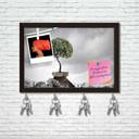 |Pin Board & Key Hooks; Dark Brown Frame | SIZE: 11.5 x 8 inch (29 x 20 cms): including 0.75 inch wide Dark Brown Frame ||HIGHLIGHTS: |