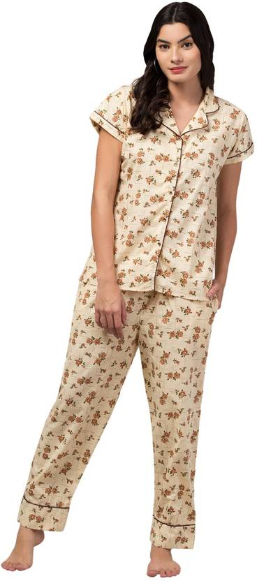 ASAD GARMENTS Women Shirt & Pyjama set Gold Floral Print
